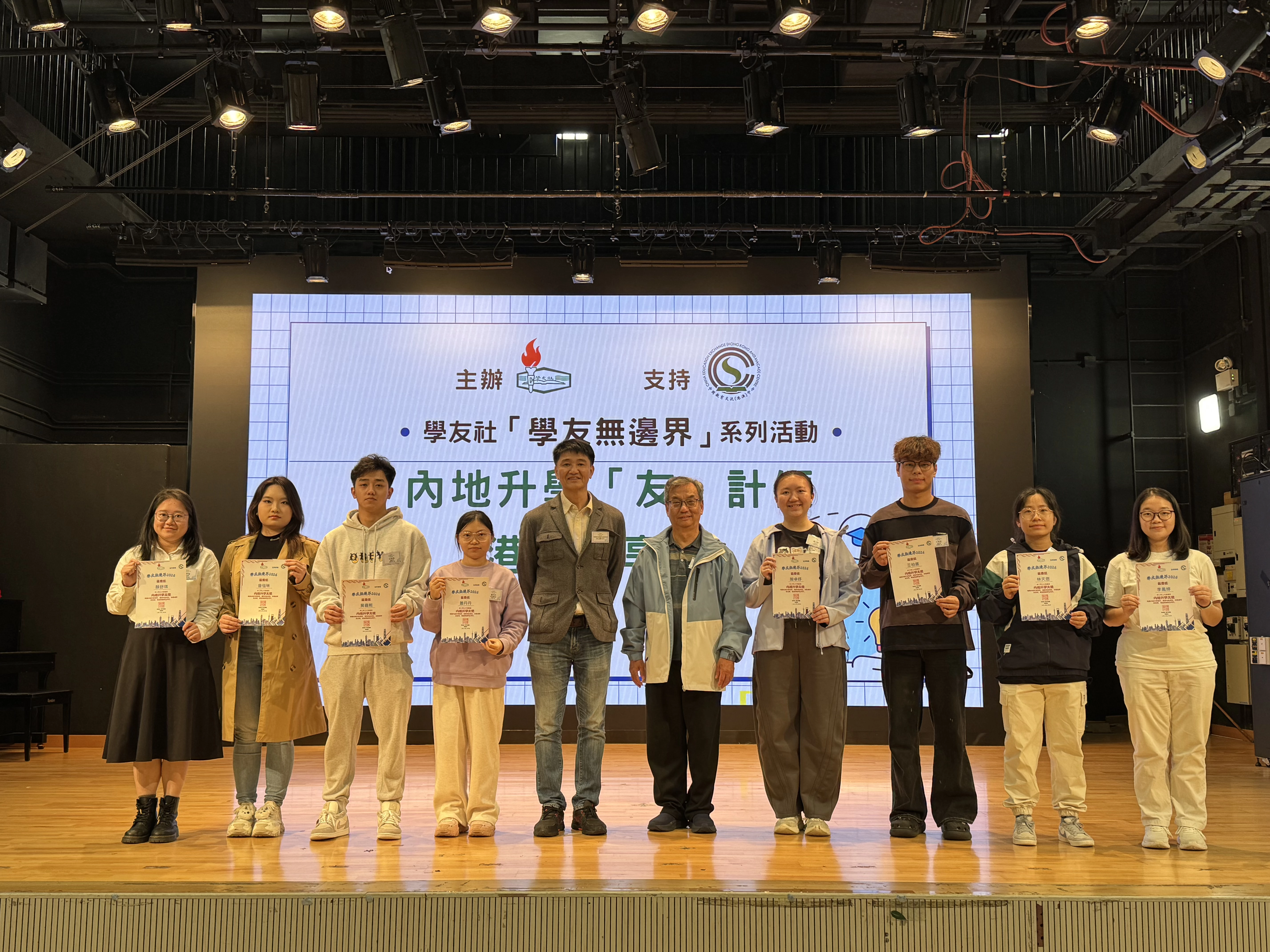 除此之外,本社註冊社工亦有講解選科策略和升學決策的不同因素,提升同學們的規劃模式,更好地準備未來不同的升學路向。爾後,一眾內地港生從學友社名譽社長手上接過委任證書,肩負支援港生內地升學的責任。藉此機會,他們以小組形式與來賓分享了選科抉擇和內地求學的環境,師生家長們均投入這次的交流當中。